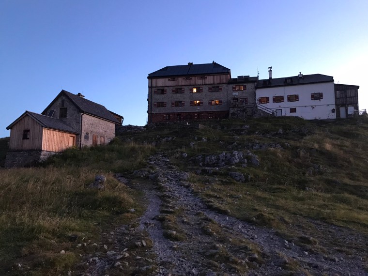 Bewaffnet mit Rucksack, Trailrunning Stöcken sowie einer Stirnlampe am Kopf, starteten wir um 03:29 Uhr am Parkplatz. Mit einer Gehzeit von 4 Stunden ist der Aufstieg zum Watzmannhaus ausgeschrieben. An diesem Tag gab es keine Zeitvorgabe, viel mehr hieß es: Kräfte sparen und gewissenhaft einteilen. Von Beginn an führte uns ein steiler Wanderpfad durch den Wald und es dauerte knapp 45 Minute bis wir die Baumgrenze durchbrachen und die Stubenalm erreichten. Weiter ging es bis zur Mitterkaseralm, von wo aus man einen perfekten Blick auf die Watzmannfrau hat. Es setzte nun die erste Morgendämmerung ein und dauerte auch nicht mehr lange, bis wir das Watzmannhaus nach circa 1:50h erreichten.